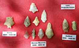Researchers now are finding plenty of artifacts from that time - the Archaic period - on high ground. Audrey Dawson, the chief investigator at the Fort Jackson site, and her crew have found five dense concentrations. They uncovered sandstone they believe is from hearths, quartz that has been chipped to create tools and projectile points, and rare pieces of pottery.