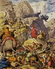 His army of more than 30,000 infantry, 5,000 cavalry, and 37 battle elephants from Morocco marched through the autumn from Spain, which he had taken. When they reached the Alps some of Hannibal’s soldiers died of exposure in the bitter cold, while others fell to their death; only about half of them reached northern Italy.