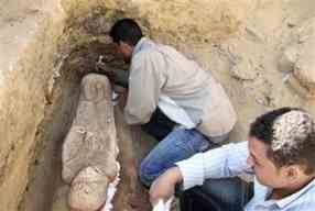 "Early investigations uncovered four anthropoid masks made of plaster, a gold fragment decorated with engravings of the four sons of Horus, and a collection of coins, and clay and glass vessels," the ministry's statement quoted Egypt's chief archaeologist Zahi Hawass as saying.