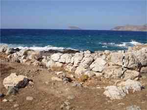 The town sits atop a low ridge with four promontories on its coastline. Two of these promontories end in high vertical cliffs that would be tough going for an invader. The other two promontories “slope gently down to the shore,” said Professor Watrous. They would have provided easy access to the town. “It was on these two promontories that the Minoans built structures.”
