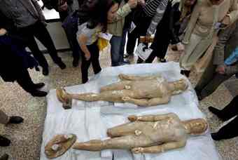 "They are exactly the same, with a slight variation in hairstyle and a small difference in height," said Nikos Kaltsas, director of the National Archaeological Museum in Athens where the finds were temporarily housed for conservation and study. "The artist may have wanted to produce two similar figures that would form part of a group."