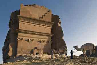 On an arid plain in northern Saudi Arabia, the forlorn figure of Qasr al-Farid, "the Lonely Castle," rises four stories tall not far from the center of the ancient Nabataean city of Hegra.