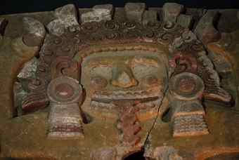 On Wednesday, the huge stone monument was put on display for reporters before its first public exhibition. The sculpture itself challenges the public perception of Aztec monuments as bare stone-colored carvings, because it preserves a half-dozen original colors in which it was originally painted, including rich ochre, red, yellow and blue hues.