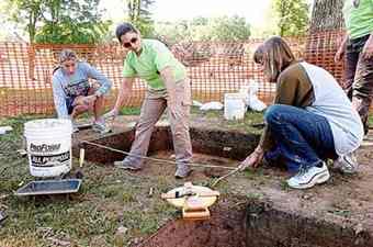 Blondino, Carin Boone and Katie Cavallo, all season park employees, are digging 5-foot-square grids to excavate centuries-old remnants of the structure estimated to be about 24 feet long and 20 feet wide.