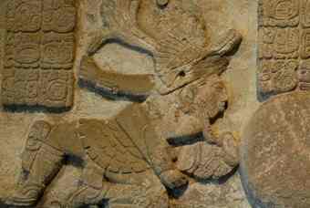 The stele represents the third creation of the universe, when one of the divine twins (whose deeds are narrated in Popol Vuh) defeated the lords of the underworld to free humanity of cold and darkness.
