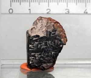 The tiny fragment measures two centimetres by 2.8 cm (about one square inch) and is covered with cuneiform script, the earliest known form of writing in the world.