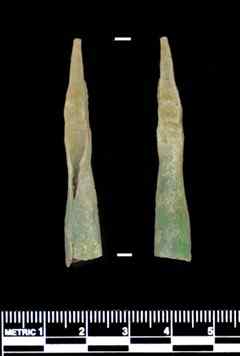 So far, Schmader had turned up 20 copper bolts (points for crossbow projectiles) plus wrought-iron nails for horseshoes and other purposes, lead shot from arquebuses (a predecessor of the musket), aglets (copper tips for clothing laces), buttons and the steel tip of a small dagger — all of them likely to have been left there by Coronado's expedition, probably during a siege of the pueblo.