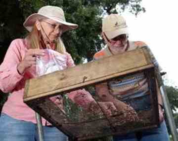 About 100 yards away, Jack Caldwell, Douglas archaeologist Dwight Kirkland and Rosanne Moore of Waycross were separating mussel and oyster shells.