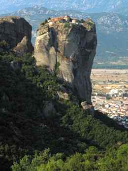 The secluded Monastery of Saint Stephen, one of the more accessible, also boasts bright frescoes, dating from the mid sixteenth century. Perhaps the most challenging access is offered by the Monastery of the Holy Trinity, but visitors who complete the ascent by steps carved into the rock are rewarded by a spectacular panoramic view. The largest monstery, and one of the most impressive, is Megalo Meteora, whose Church of the Transfiguration is one of the most beautiful in Greece. Its wonders include the apse frescoes of the Holy Communion and the image of Athanasios,the founding abbot who compiled the rules that still govern the monastic life of Meteora.