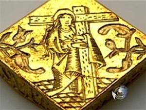 The British Museum says the pendant weighs a third of an ounce and has a gold content of about 73 percent, according to the BBC. An image engraved on the pendant is likely the Virgin Mary. It is also decorated with the five wounds of Christ.