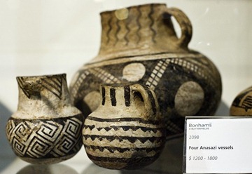 News of raids in the Southwest, both last year and in the 1990s, has diminished interest in the items, he says. He’s not aware of prices plunging during his 26 years here, though he rarely sees much of it offered and has included only a handful of Anasazi pieces in this auction.