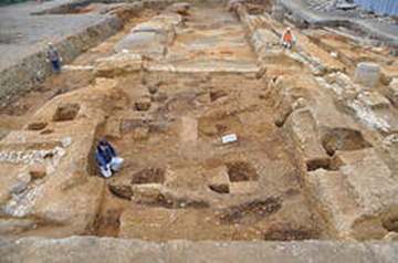 Ahead of the reconstruction of a nearby elementary school, the center researched 780 square meters of land about 350 meters west of the Council Hall, and discovered 21 pillar holes -- located apparently at the northwest corner of the hall -- and four stone-lined drainage ditches surrounding the pillar holes.