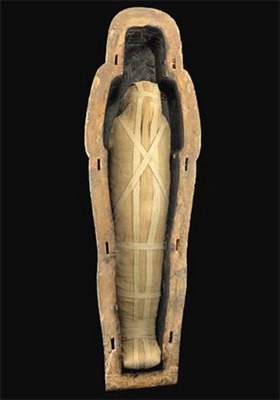 Ancient Egyptian mummification was a ticket to the afterlife. The recently deceased's innards would be removed before the hollowed body was dried out with salts. The skin was then treated with oils, resins and perfumes and wrapped in linen for protection. The body would then be covered in charms and placed in a sarcophagus inside the tomb. The mummy was then buried with supplies of food, drink and any other comforts needed in the afterlife. Its mouth would be opened later to symbolise breathing and the continuation of life.
