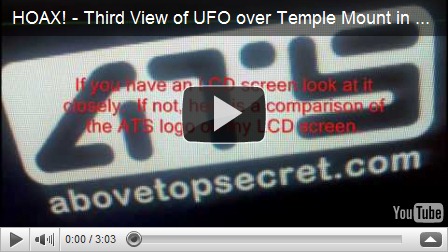 The man behind this last video – aptly named HOAXKiller1 – explains that this third view of the UFO from the Temple Mount is completely FAKE. Its creators evidently put together an animation – using a photo downloaded from Wikipedia as the ‘background’ - which they played through an LCD screen and then re-filmed using a video camera adding the various sound effects and wobbles to make it look and sound genuine. You will also have observed that they forgot to add the fake lights seen in the first two fake videos!!!