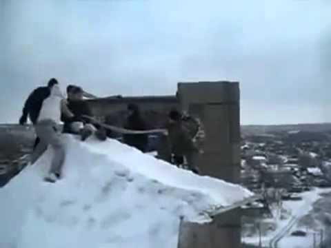Μια παρέα από τη Ρωσία βγήκε στην χιονισμένη οροφή του σπιτιού της για να κάνει bungee jumping.