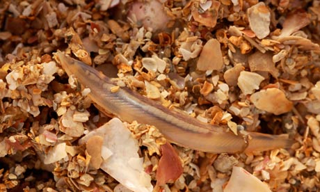 | Amphioxus, seen as representative of first animals to evolve a backbone, among 15 marine species discovered this year [Credit: Andrew Want/Marine Scotland/PA via Guardian] |