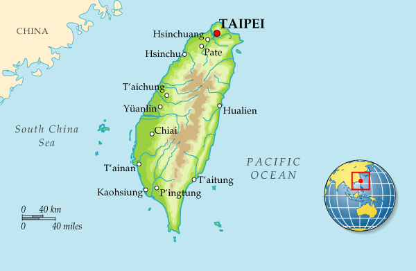 Principales villes : Kao-hsiung, T'ai-chung, T'ai-nan, Panchiao, Chi-lung, Hsin-chu, Chia-li, Chung-li