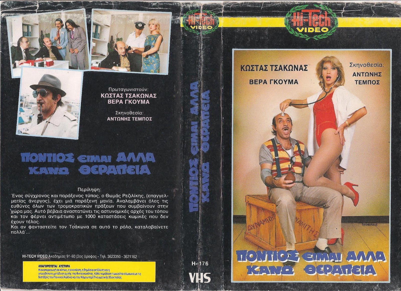 Πόντιος είμαι αλλά κάνω θεραπεία Έτος: 1985 Είδος: Κωμωδία Σκηνοθεσία: Αντώνης Τέμπος Ηθοποιοί: Κώστας Τσάκωνας (I) , Βέρα Γκούμα , Μιχάλης Γούναρης , Αλέκος Ζαρταλούδης , Βιργινία Ζίνγκλερ , Μάκης Κωστίνης , Παντής Κούσης Σχόλια/Πλοκή: Ένας σύγχρονος και παράξενος τύπος, ο Θωμάς Ρεζιλίκης, επαγγελματίας άνεργος, έχει μια παράξενη μανία. Αναλαμβάνει τις ευθύνες όλων των τρομοκρατικών πράξεων που συμβαίνουν στην χώρα μας. Αυτό βέβαια αναστατώνει τις αστυνομικές αρχές του τόπου και τον φέρνει αντιμέτωπο με κωμικές καταστάσεις κωμικές, που δεν έχουν τέλος....