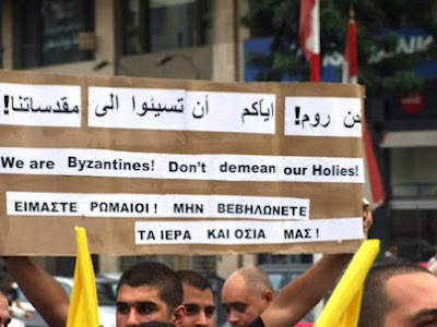Είχαμε αναδείξει παλιότερα το ποιοι είναι οι Ρωμιοί του Λιβάνου και είχαμε φιλοξενήσει συνέντευξη του ιδρυτού του Ελληνορθόδοξου κόμματος Πάρτε και την σημερινή ειδησάρα, τη στιγμή που χτες στην…Αθήνα κάποιοι ήθελαν να παίξουν “θέατρο” την βλάσφημη παράσταση Corpus Christi. Αφού είναι τόσο “δημοκράτες” και “ανοιχτόμυαλοι”, δεν φτιάχνουν κάτι ανάλογο με τον Μωάμεθ;;; Αυτά για να καταλάβουμε ότι ο ελληνισμός θνήσκει στην μητρώα γη, παρακολουθώντας τουρκοσήριαλ, αλλά αλλού… φαίνεται ότι μάλλον ξυπνάει… Οι Ελληνορθόδοξοι του Λιβάνου ματαίωσαν την προβολή τουρκικής ταινίας για την Άλωση της Πόλης! Με ανακοίνωση της η τουρκική εταιρεία παραγωγής της προκλητικής ταινίας «ΑΛΩΣΗ 1453» ανακοίνωσε πως η προβολή της στη Βηρυτό του Λιβάνου, αναβλήθηκε μετά τις έντονες αντιδράσεις μελών του Ελληνορθόδοξου κόμματος, όπως χαρακτηριστικά αναφέρει δημοσίευμα στην ιστοσελίδα του τουρκικού πρακτορείου ειδήσεων Anadolu, στην αραβική γλώσσα. Το δημοσίευμα φιλοξενεί δηλώσεις του προέδρου του κόμματος Dimitri Rodrigue Khoury, σύμφωνα με τον οποίον η προβολή της ταινίας είναι «είναι ανιστόρητη και προσβάλλει τον Ορθόδοξο πληθυσμό του Λιβάνου και όχι μόνο». Το υπουργείο Πολιτισμού του Λιβάνου, ανακοίνωσε πως αναβάλλεται η προβολή της επίμαχης ταινίας στους κινηματογράφους της χώρας, έως ότου εξεταστεί το αίτημα που κατέθεσε το «Κόμμα της Ανατολής», όπως είναι ο επίσημος τίτλος του ελληνορθόδοξου κόμματος. Το «Κόμμα της Ανατολής», του Λιβάνου, ιδρύθηκε πρόσφατα με στόχο να οργανώσει και να συσπειρώσει του Ορθόδοξους Χριστιανούς, που αγγίζουν το 7% του συνολικού πληθυσμού «Στον Λίβανο λένε πως “είμαι Ελληνορθόδοξος” ή “είμαι Ρωμιός”, χωρίς να ξέρουν την πραγματική σημασία των λέξεων. Βλέπετε, η αραβική προπαγάνδα λέει πως “είστε άραβες” και ότι “οι Έλληνες ήταν κατακτητές”, κάτι που δεν είναι αλήθεια. Είμαστε απόγονοι των Βυζαντινών, που ζούσαν εδώ πολύ πριν έρθουν οι Άραβες το 634 μ. Χ! Παρότι λοιπόν με τον καιρό ξεχάσαμε την ελληνική μας γλώσσα – που τώρα ξανα μαθαίνουμε – διατηρήσαμε την Ορθόδοξη πίστη μας και το όνομά μας, που δεν είναι Άραβας, αλλά Ρωμιός – Έλληνας» δηλώνει ο κ.Khoyry. Σε όλους αυτούς που προσπαθούν να ΠΕΘΑΝΟΥΝ τον Ελληνισμό, θα τους απαντήσουμε όπως είχαμε γράψει και τότε, ΔΕ ΘΑ ΠΕΘΑΝΟΥΜΕ, ΑΝΤΕΧΟΥΜΕ!!! Πηγή