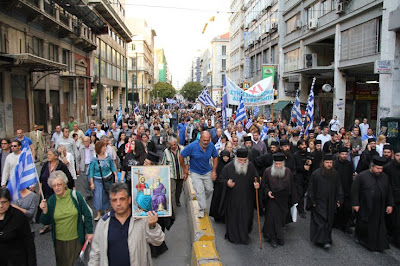 Χιλιάδες λαού για άλλη μια φορά συγκεντρώθηκαν με πρωτοβουλία του Ιερού Συνδέσμου Κληρικών Ελλάδος (ΙΣΚΕ), της Πανελλήνιας Κληρικολαϊκής Επιτροπής Αγώνος και του Ινστιτούτου Καταναλωτών Ελλάδος (ΙΝΚΑ) εναντίον της ηλεκτρονικής ταυτότητος. Το πλήθος του λαού από τις 3.00 το μεσημέρι την Κυριακή 21 Οκτωβρίου έως τις 7.00 το απόγευμα βροντοφώναξε στο Πεδίον του Άρεως αλλά και στην πορεία που κατέληξε στη Βουλή, ότι αρνείται να παραλάβει την ηλεκτρονική ταυτότητα η οποία θα είναι ο μόνιμος χαφιές και ρουφιάνος του κράτους μέσα στα πορτοφόλια μας ή στην τσέπη μας. Αρνήθηκε το πλήθος την ηλεκτρονική παρακολούθηση και την δέσμευση της ελευθερίας του ως προσώπου. Η ελευθερία είναι δώρο Θεού και μόνο φασιστικά καθεστώτα την καταργούν από τους λαούς. Στην συγκέντρωση από τους ομιλητές τονίστηκε ότι έρχονται δύσκολες ημέρες για ολόκληρη την ανθρωπότητα και οι μάζες των λαών μπορούν να ελεγχθούν μόνο μέσω ενός μικροτσίπ τονίζουν οι παγκοσμιοποιητές. Η Νέα Τάξη Πραγμάτων θέλει να γνωρίζει μέσω της ηλεκτρονικής διακυβερνήσεως, ποιοι είναι οι αντίπαλοί της, ώστε να καταγραφούν ηλεκτρονικά και να φακελωθούν στο μικροτσίπ τα πρόσωπα αυτά, για να εξουδετερώνονται μετά με ταχύτητα φωτός. Η αντιδρούμε τώρα ή θα χάσουμε την ελευθερία μας, την ζωή μας, την περιουσία μας... Η δικτατορία των Αγορών δεν παίζει με τους λαούς, θέλει αριθμοποίηση των ανθρώπων τώρα προς έλεγχό τους. Ήδη οι παγκόσμιες Αγορές ελέγχουν το διεθνές εμπόριο με το barcode, τα ζώα με την εμφύτευση του μικροτσίπ και τώρα θέλουν να δώσουν την Κάρτα του Πολίτη ή την ηλεκτρονική ταυτότητα με μικροτσίπ στους ανθρώπους για να ελέγξουν και αυτούς. Στην αρχή θα δοθεί το μικροτσίπ σε μια πλαστική κάρτα η οποία εύκολα χάνεται, για να περάσουμε αμέσως μετά στην εμφύτευση του μικροτσίπ στο χέρι ή στο μέτωπο του ανθρώπου, έτσι ώστε να εκπληρωθεί η προφητεία της Αποκαλύψεως που λέγει: ότι όλοι θα λάβουν στο χέρι ή στο μέτωπο το χάραγμα του αντιχρίστου, ώστε κανείς να μην μπορεί να έχει οικονομικές συναλλαγές (αγοράζει και πουλάει) παρά μόνο όσοι έχουν το χάραγμα του θηρίου ή το όνομα αυτού. Η συγκέντρωση του λαού δημιουργώντας μεγάλη πορεία κατέληξε στην πλατεία Συντάγματος ενώπιον της Βουλής όπου κατέθεσαν ψήφισμα στον Πρόεδρο της Βουλής και διαλύθηκαν ειρηνικά. Ομίλησαν στην συγκέντρωση ο Πρωτοπρεσβύτερος Χρήστος Χριστοδούλου, ο Αρχιμανδρίτης Γέροντας Νεκτάριος Μουλατσιώτης, ο δημοσιογράφος Μανώλης Μιλιαράκης, ο Δημήτρης Μπακάλης (ΕΛΚΙΣ) και ο Χαράλαμπος Δελινταδάκης (ΙΝΚΑ). Χαιρετισμό απηύθυνε ο Αρχιμανδρίτης π. Σαράντης Σαράντος και άλλοι κληρικοί. Μηνύματα συμπαραστάσεως και εκπροσώπους στην συγκέντρωση έστειλαν οι Μητροπολίτες Πειραιώς κ. Σεραφείμ και Νέας Ιωνίας κ. Κωνσταντίνος. Στην συνέχεια δημοσιεύουμε μερικές φωτογραφίες που φαίνεται το συγκεντρωμένο πλήθος στο Πεδίον του Άρεως, στην πορεία και ενώπιον της Βουλής. Επίσης ακολουθεί η ομιλία του Γέροντος Νεκταρίου Μουλατσιώτη στην συγκέντρωση κατά της κάρτας του πολίτη. Πηγή άρθρου: Ιερά Μονή Αγίων Αυγουστίνου Ιππώνος και Σεραφείμ του Σάρωφ http://www.pentapostagma.gr/2012/10/15000-12000.html#.UIaIZZq2630.email
