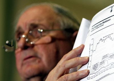 Ο πρώην αναλυτής της Goldman Sachs, Charles Nenner, δήλωσε στο Fox Business Network, ότι ο δείκτης Dow Jones βρισκόταν στο επίπεδο κατάρρευσης των 5.000 μονάδων και στα πρόθυρα ενός «μεγάλου πολέμου», που θα ταρακουνήσει τον κόσμο στα τέλη του 2012, προκαλώντας... αμηχανία στους συνομιλητές του. Ο Nenner, πρώην τεχνικός αναλυτής της Goldman Sachs, προσπάθησε να να προβλέψει τις τάσεις της αγοράς με ένα πρόγραμμα, σε υπολογιστή, που προβλέπει την πορεία των κινητών αξιών. Ο Nenner προέβλεψε την πτώση του χρηματιστηρίου και την κατάρρευση των κατοικιών, πάνω από δύο χρόνια, πριν την κατάρρευση της Lehman Brothers. Ο Nenner προβλέπει ότι όταν ο Dow φτάσει τις 5.000 μονάδες, θα σημειωθεί γιγαντιαία πτώση και θα ακολουθήσει μεγάλη ύφεση, που θα φτάσει στα επίπεδα της οικονομικής κατάρρευσης του Μαρτίου του 2009. Ο Nenner συμβούλευσε, τότε, τους πελάτες του να εγκαταλείψουν, σχεδόν εξ ολοκλήρου, την αγορά. "Είπα στους πελάτες μου, τα συνταξιοδοτικά ταμεία, τις μεγάλες επιχειρήσεις και στα αμοιβαία κεφάλαια κινδύνου, να εγκαταλείψουν την αγορά, σχεδόν εξ ολοκλήρου", δήλωσε ο Nenner. Τι θα μπορούσε, όμως, να οδηγήσει σε μια τέτοια δραματική μείωση; Ίσως, μια πετρελαϊκή κρίση που θα μπορούσε να ξεκινήσει από την "ημέρα της οργής", στη Σαουδική Αραβία ή κάτι άλλο; Σύμφωνα με το Nenner, η κατάρρευση θα ξεκινήσει από "ένα μεγάλο πόλεμο, στο τέλος του 2012 - 2013. Αυτός, λοιπόν, ο «μεγάλος πόλεμος», θα οδηγήσει στην κατάρρευση του χρηματιστηρίου. Bάσει των όσων ισχυρίζεται, λοιπόν, ο πόλεμος θα έχει τις ρίζες του, στην τρέχουσα αναταραχή που βλέπουμε εξαπλώνεται σαν "φωτιά" σε όλη τη Βόρεια Αφρική και τη Μέση Ανατολή. πηγη