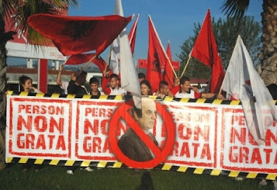 Επεισόδια δημιούργησαν οι ακραίοι εθνικιστές του αλυτρωτικού κόμματος της Ερυθρόμαυρης Συμμαχίας στον υπουργό Εξωτερικών της Αλβανίας, Εντμόντ Παναρίτι, μπλοκάροντας του την έξοδο από το αεροδρόμιο "Μητέρα Τερέζα" μετά την άφιξή του από επίσημη επίσκεψη... στην Αθήνα και την Λευκωσία, επειδή κατά την διάρκεια της επίσκεψής του στην Ελλάδα είχε τοποθετηθεί ... ανάποδα η αλβανική σημαία στον ιστό (που να καταλάβουν ότι δεν επρόκειτο περί προσβολής στην αλβανική σημαία, αλλά περί διάλυσης των πάντων στην Ελλάδα). Εν πάση περιπτώσει τον υποδέχθηκαν με σφυρίγματα και συνθήματα εναντίον του, κατηγορώντας τον για την "ταπείνωση" των εθνικών συμβόλων και την "άτολμη" αντίδραση του Παναρίτι, η Ερυθρόμαυρη Συμμαχία μπλόκαρε την έξοδο του υπουργού από τον τομέα των "VIP" του αεροδρομίου "Μητέρα Τερέζα" ανοίγοντας μάλιστα και πανό που έγραφε «Edmond Panariti – person “non grata”» στην Αλβανία. Σε δήλωση του στα αλβανικά ΜΜΕ ο Οργανωτικός Γραμματέας της AK, Redi Ramaj, τάχθηκε κατά της επαναδιαπραγμάτευσης της συμφωνίας για τα θαλάσσια σύνορα μεταξύ Αλβανίας και Ελλάδας, ενώ ζήτησε να δημοσιοποιηθούν με κάθε μέσο τα πρακτικά των μυστικών συνομιλιών Παναρίτι - Αβραμόπουλου. Και όλα αυτά ενώ συνέβη το πρωτοφανές, να τεθεί δηλαδή επίσημα για πρώτη φορά θέμα επιστροφής των περιουσιών των αλβανόφωνων Τσάμηδων, οι οποίοι είχαν συνεργαστεί με τους Γερμανούς κατά των Ελλήνων στον Β'Π.Π., εν συνεχεία φυσικά εκτοπίστηκαν, αφού πρώτα είχαν αιματοκυλίσει ολόκληρη την Ήπειρο και φέρονταν ως στρατός κατοχής στην χώρα που τους φιλοξενούσε. Τμήμα ειδήσεων defencenet.gr