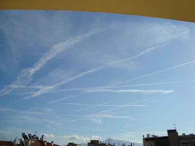 Τουλάχιστον 10 αεροσκάφη ταυτόχρονα πάνω από την Δράμα και όπως φαίνεται από τη φωτογραφία στο βάθος είναι η κορυφή του Παγγαίου, τα αεροσκάφη βρίσκονται και πέρα από το Παγγαίο, εκεί βρίσκεται η Θεσσαλονίκη. πηγη