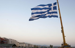 » Η μεγαλύτερη ελληνική σημαία κυματίζει στο λιμάνι της Θεσσαλονίκης.