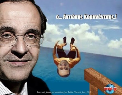 "Γιατί απορούν κάποιοι με την σχεδόν ολοσχερή απώλεια της όρασης από το ένα μάτι που υπέστη ο δωσίλογος Πρωθυπουργός της Μέρκελ, Αντώνιος Σαμαράς, αμέσως μόλις ανέλαβε την εξουσία; Τα 'θελε και τα 'παθε, κατά το κοινώς λεγόμενο. Με τόσους... όρκους και «δεσμεύσεις» που είχε φλομώσει το αφελές πόπολο παραμονές των εκλογών, πώς να μην επέλθει η νέμεση; Γιατί πώς αλλιώς παρά «ύβρις», κατά την αρχαιοελληνική έννοια του όρου, μπορούν να χαρακτηρισθούν τα ιταμά ψεύδη και η ενσυνείδητη εξαπάτηση των ψηφοφόρων κατά τις δύο τελευταίες εκλογικές αναμετρήσεις; Ποιος μπορεί να ξεχάσει τις άναρθρες και άχαρες κραυγές του Τρελαντώνη στις προκάτ προεκλογικές συγκεντρώσεις της ΝΝΔούλας, με τις οποίας υποσχόταν ότι δεν θα περικοπούν άλλο τα εισοδήματα των πολιτών; Ότι θα αποτρέψει «πάση θυσία» τις περαιτέρω μειώσεις μισθών και συντάξεων, και την κατάργηση του 13ου και 14ου μισθού; Ο Αλητοπροδότης της Συγγρού και του Μαξίμου έχει διαπράξει έγκλημα καθοσιώσεως εναντίον του Λαού και της χώρας. Έχει ασελγήσει όσο κανείς άλλος πάνω στις έσχατες ελπίδες των απεγνωσμένων πολιτών. Κορόιδεψε οικτρά και ξεδιάντροπα τους πάντες, προκειμένου να επιτύχει την αναρρίχηση στον πρωθυπουργικό θώκο. Αυτές οι αθλιότητες δεν μπορεί παρά να πληρωθούν ακριβά... Και από τον Θείο και από τον ανθρώπινο παράγοντα... Δείτε στο βίντεο τι έλεγε ο αθεόφοβος τον Απρίλη του 2012, σε προεκλογική ομιλία του στη Θήβα. Ποια τιμωρία άραγε αρμόζει σε ένα τέτοιο πολιτικό Κάθαρμα;..." (To σχόλιο δεν είναι δικό μας. Ανήκει σε χρήστη του youtube. Eαν ο κ.Σαμαράς ή οι κολαούζοι του θίγονται, να μας πάρουν τηλέφωνο).