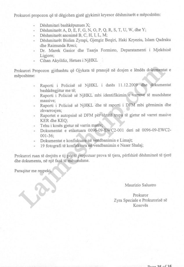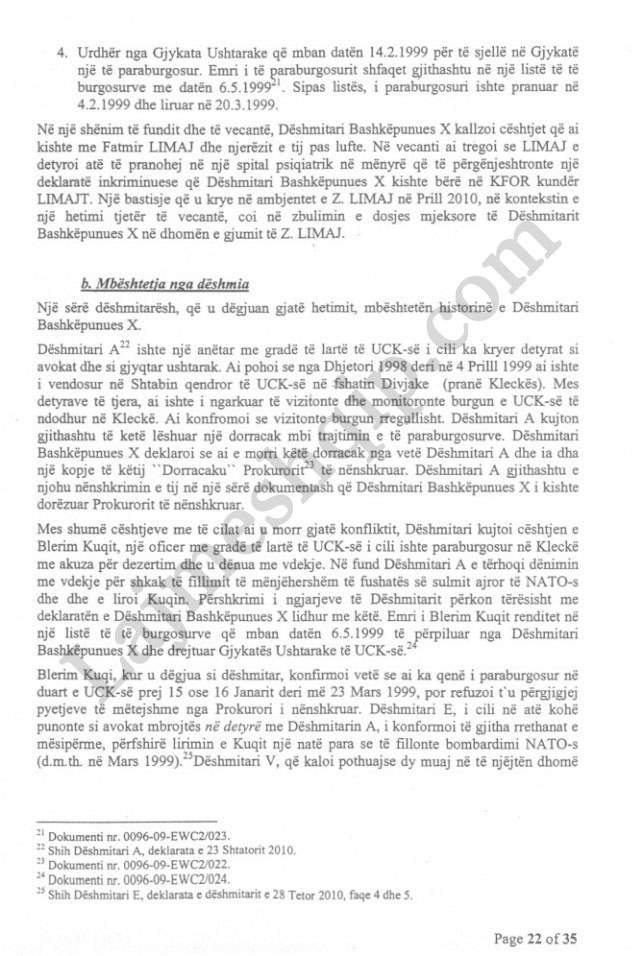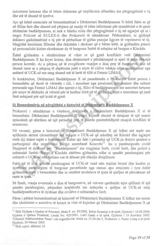 Portali LajmeShqip.com e publikon ekskluzivisht dokumentin e hartuar tash e një kohë të gjatë, me protagonist kyç të shumëpërfolurin Dëshmitarin X, aktakuzën e nxjerrur tash nga sirtarët e prokurorisë kundër Fatmir Limajt dhe bashkëluftëtarëve të tij, në Rastin Kleçka.