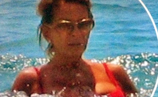 Ο φωτογραφικός φακός του HELLO, την "συνέλαβε" στην παραλία Κριού της Παροικιάς να κολυμπά και να μιλά στο κινητό της, κάτω από τον καυτό ήλιο, μαζί με τον σύζυγό της, Νίκο Νικητέα.