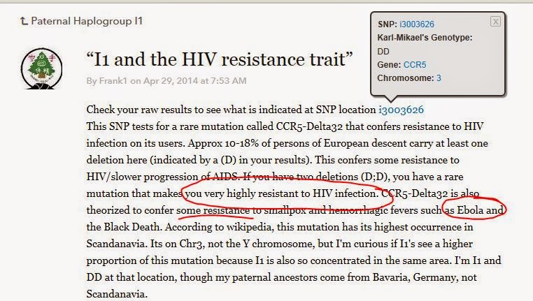 Today I found this encouraging news about HIV and Ebola resistance regarding my genome: