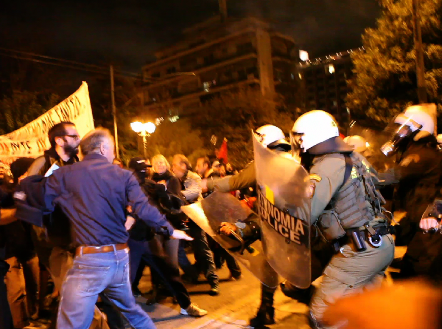 "Ξυλοκοπήθηκα από την ελληνική αστυνομία. Στεκόμουν σε ένα δρόμο κοντά στην πορεία, ήμουν άοπλος και το πρόσωπό μου ήταν ακάλυπτο. Απλώς στεκόμουν στη γωνία, υψώνοντας τα χέρια για να δείξω ότι είμαι άοπλος. Με χτύπησαν με τα γκλοπ. Δεν έκανα τίποτα, δεν είπα τίποτα. Ενώ ήμουν βρισκόμουν πεσμένος στο έδαφος ουρλιάζοντας, ακόμα περισσότεροι αστυνομικοί ήρθαν και με χτύπησαν.Τώρα κρύβομαι σε ένα σπίτι κάποιων καλών Ελλήνων. Τι είδους χώρα είναι αυτή που πρέπει να φοβάσαι την αστυνομία;