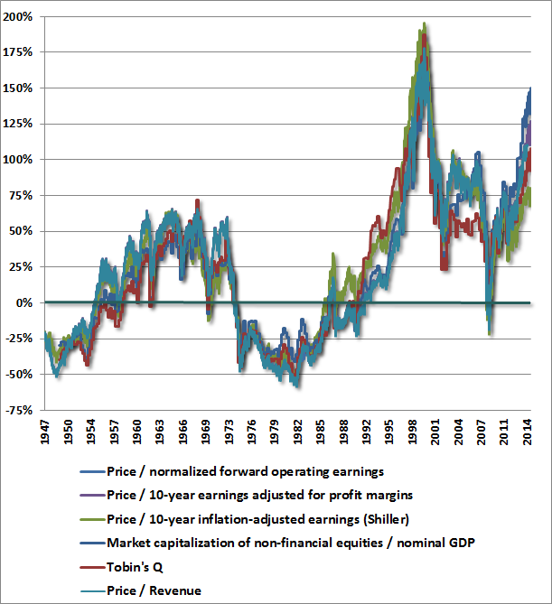 So what? They were 50% above the historical average a while back, and stocks have gone up since then. What's to keep valuations to go to 150% of the historical norm? Yellen will keep printing money, won't she?