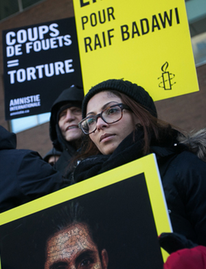 Dear , Raif Badawi — a blogger in Saudi Arabia — is suffering through a brutal sentence of 10 years and 1,000 lashes, which he received for publishing a website that encourages social and political debate. Amnesty is waging an all-out campaign to release Raif and stop the floggings.Donate to support our efforts. Here's what Raif's wife Ensaf asked me to share with you. ![]() "A year ago, I was trying to organize a protest for Raif — just one — in front of the Saudi Embassy in Canada; only one vigil was like a dream for me! But recently, and with Amnesty International's activists, this impossible dream became a frequent reality in most of the world's capitals; yes, with your weekly protests you have made this despotic regime postpone Raif's flogging eight times so far. When I am allowed to speak with Raif directly, I brief him about what is happening and he asks me about the number of sit-ins taking place and their locations. To you, free people still standing up for Raif, your protests are making a difference! Please do not stop until Raif is released." — Ensaf Badawi, Raif's wife | ||