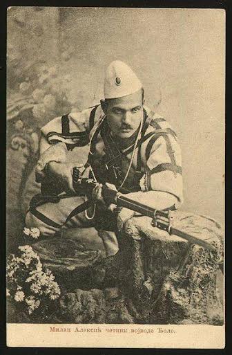 Në foto (majtas) shiet me kostume shqiptare qetniku i njohur serb Vojvoda Milan Aleksić i cili shpesh u gjend ne mesin e shqiptarëve.Përkunder ketyre prvokimeve serbe me kostume kombëtare, ku cetniket perdornin si metoda dhe intriga per te mposhtur shqiptaret, por gjithnje dilnin humbas përballe betejave.