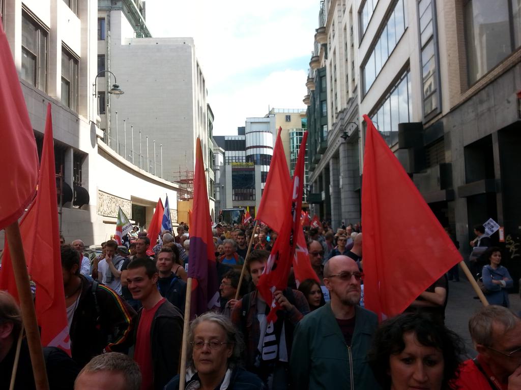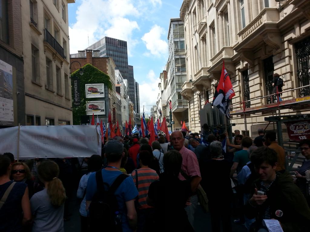 Μεγάλη πορεία πραγματοποιήθηκε σήμερα το μεσημέρι στις Βρυξέλλες υπέρ της Ελλάδας και κατά της λιτότητας.