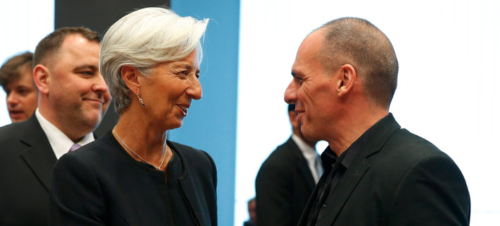 Tα χαμόγελα δεν ήταν τόσο εντυπωσιακά, όσο στην πρώτη τους συνάντηση στο Eurogroup. Λαγκάρντ και Βαρουφάκης μετά τα πρώτα βεβιασμένα χαμόγελα, αντάλλαξαν μερικές φράσεις.