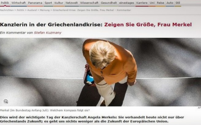«Αυτή είναι η πιο σημαντική μέρα της Ανγκελα Μέργκελ στην Καγκελαρία. Διαπραγματεύεται σήμερα όχι μόνο το μέλλον της Ελλάδας αλλά ολόκληρο το μέλλον της Ευρωπαϊκής Ένωσης» γράφει το γερμανικό περιοδικό.