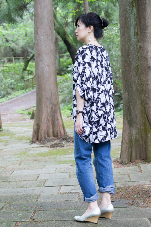 This is view D. I've made a view A and D, I lengthened the skirt to knee length. The yokes are combined with a view B. The fabric is a soft tencel jersey that I bought it Japanese online.