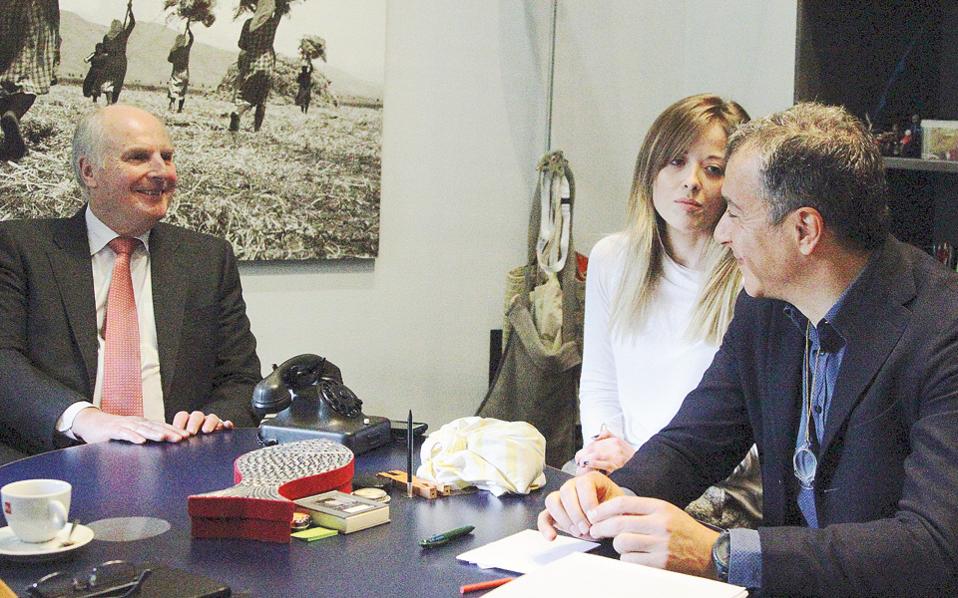 Δεξιά, ο πρόεδρος του Ποταμιού. Αριστερά, ο πρόεδρος της Eldorado Gold. Ενδιαμέσως, η ...
