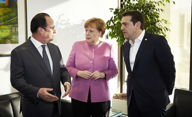 Τσίπρας – Merkel – Hollande κατά την συνάντησή τους (στο περιθώριο της Συνόδου Κορυφής που πραγματοποιείται στις Βρυξέλλες) η οποία διήρκησε περίπου μία ώρα.