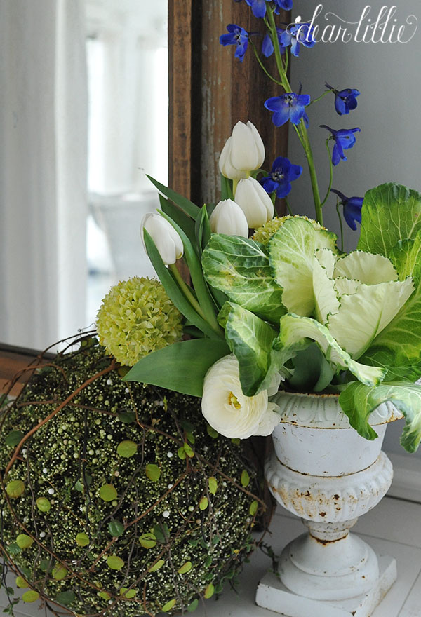 Moss Ball and Urn Holding Flowers - White Home Collection years ago