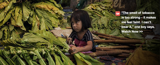 Thousands of children in Indonesia, some as young as 8 years old, are at the bottom of the supply chain for many multinational and Indonesian tobacco companies. These children are getting exposed to nicotine and toxic pesticides while tending tobacco that goes into products.