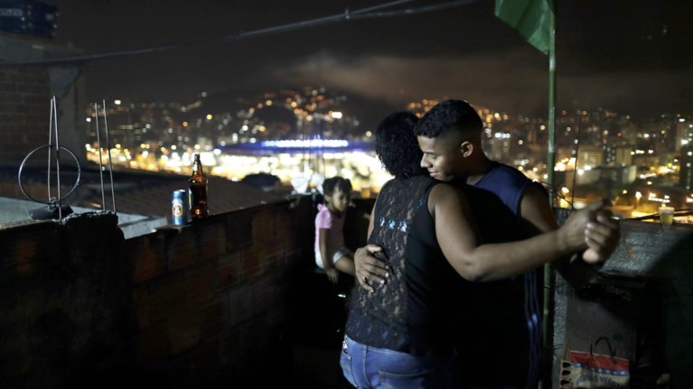 Την ώρα που στο Μαρακανά ήταν σε εξέλιξη η τελετή έναρξης των Ολυμπιακών Αγώνων, ένα ζευγάρι χορεύει υπό...