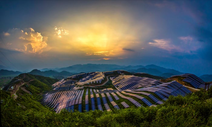 Kinë, perëndimi i diellit mbi një stacion të prodhimit të energjisë alternative