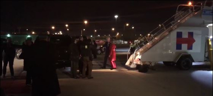 Ο σύζυγός της Μπιλ την κατεβάζει στα σκαλιά του αεροπλάνου, στην Φιλαδέλφεια, το βράδυ της Δευτέρας, βάζει το χέρι του γύρω της και την βοηθάει να περπατήσει τα λίγα μέτρα.