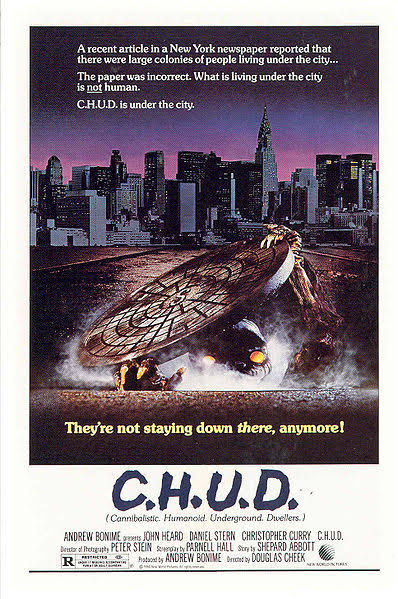 The film, titled simply "C.H.U.D," chronicles the "homeless" population that Giuliani was so attentive to as mayor, and the intrepid police officers who discovered that the C.H.U.D. were not mere "squeegee men"--(i.e. homeless people who would approach your car windshield with a dirty mop and demand money, and who Rudy Giuliani famously eradicated at the beginning of his administration)--but rather former humans that "have been mutated by radioactive, chemical toxic waste into hideous flesh-eating creatures that prey on the homeless who live underground."