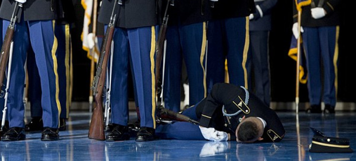 φορά επρόκειτο για μέλος της Τιμητικής Φρουράς του Αμερικανικού Στρατού που κατέρρευσε μπροστά στον Μπαράκ Ομπάμα.