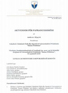 - Kushtetuesja hodhi poshtë kërkesën e Fakultetit të Edukatës Fizike